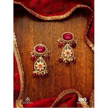SINDURINI - VERMILION GRACE - STATEMENT KUNDAN POLKI EARRINGS WITH RED GEMSTONES AND ENAMEL ACCENTS
