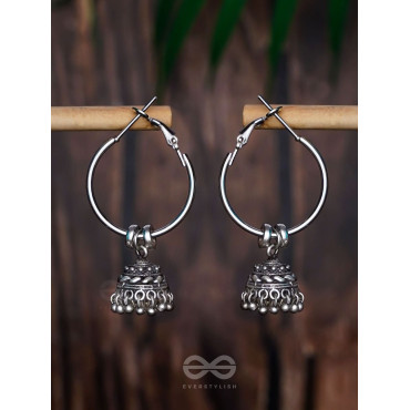 MOONLIT BEAMS - SILVER OXIDISED JHUMKA EARRINGS