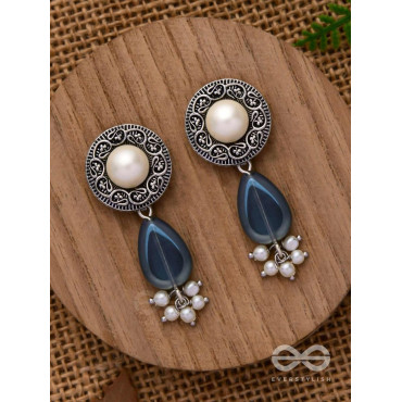 Marine Moonstone - Oxidised Pearl Jhumka Earring