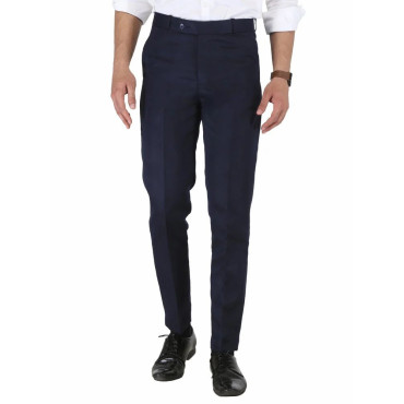 Solid Men Navy Blue Poly Viscose Formal Trouser, Regular Fit