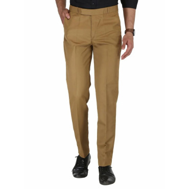 Solid Men Brown Poly Viscose Formal Trouser, Regular Fit