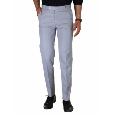 Solid Men Light Grey Poly Viscose Formal Trouser, Regular Fit