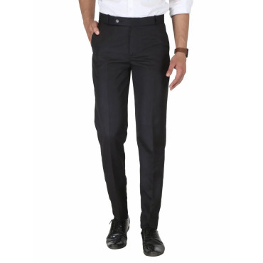 Solid Men Black Poly Viscose Regular Fit Formal Trouser