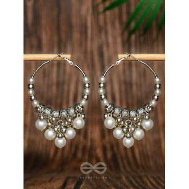 Stardust Pearl - Oxidized Pearl Hoop Earrings