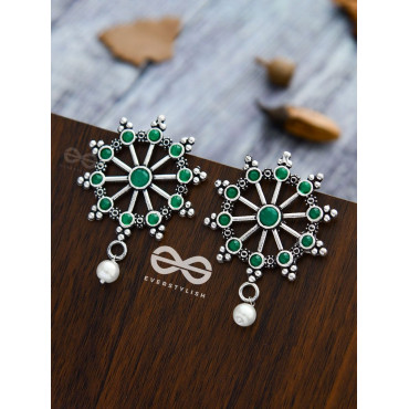 Steering My Own Ship' - Embellished Oxidised Earrings (Emerald Green)