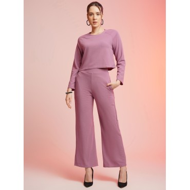 Product Details:Style: Casual, comfortable co-ord set in a soft mauve-lilac color, perfect for loungewear or casual outingsSet Includes: