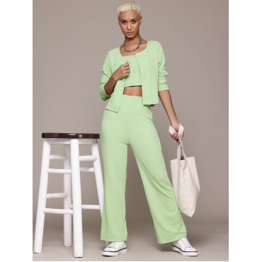 Product Details:Style: Trendy, vibrant 3-piece co-ord set in fresh mint green, perfect for casual wear and lounging with styleSet Includes:
