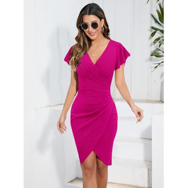 Women’s Pink V-Neck Wrap Bodycon Dress