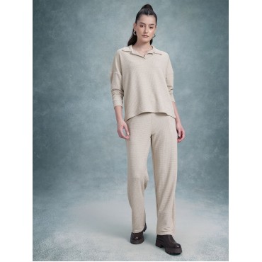 Women’s Solid Textured Co-Ord Set with Full Sleeve Top & Straight Pants