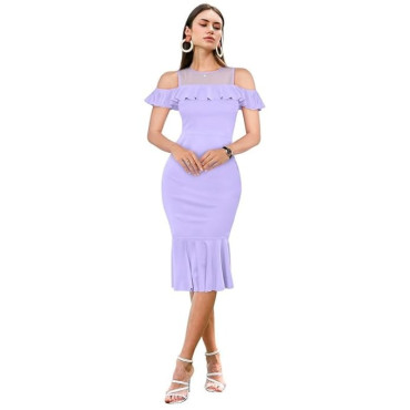 one Piece Dress for Women Short | Puff Sleeves Bodycon Dress for Women | Western Dress for Women | Cold Shoulder Mermaid Dress Dress for Women Stylish