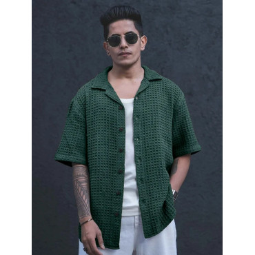 Men's Casual Shirt, Waffal shirt, Half Sleeves Green shirt for men